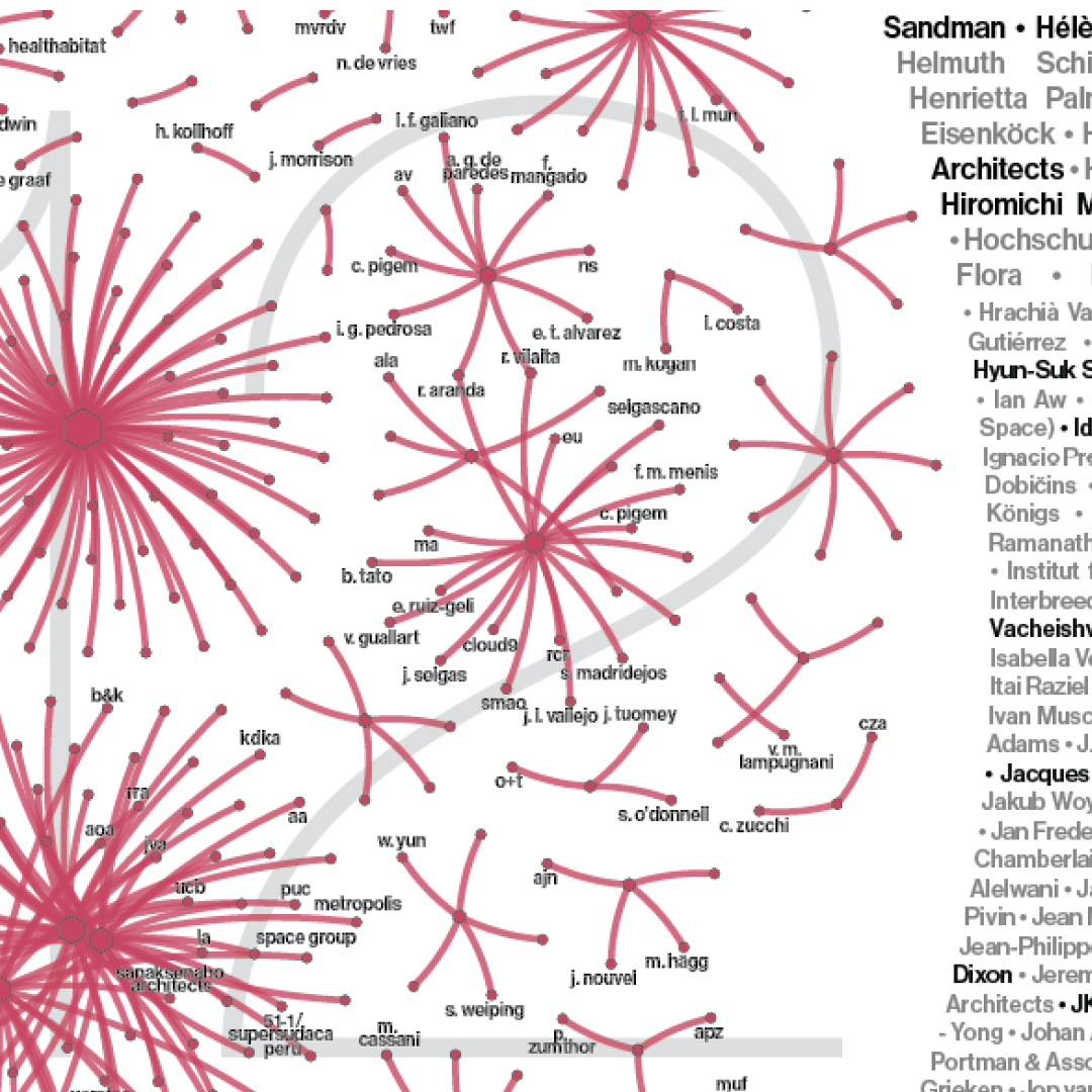 It is a timeline of the Biennale represented as a set of networks (for each year) of collaborators and their 3,800 projects.